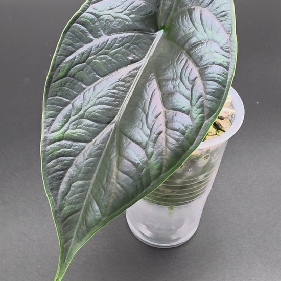 Rare collectors' Alocasia with elegant green shield-shaped foliage